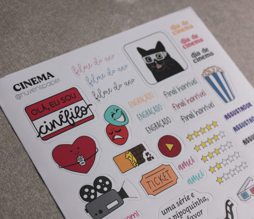 Cartela de adesivo fofa de cinema! Ótimo para decorar seu Diário de Séries e Filmes